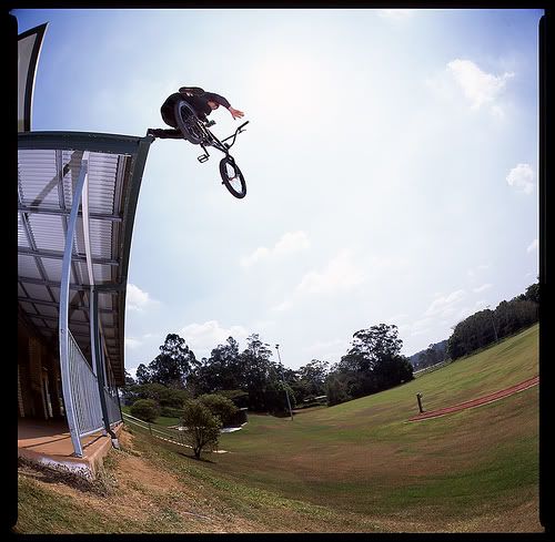 This is the original to the tempered bikes advertisement being used at the moment. Duffy did a sweet job of this, under pressure too. This roof was mega hard to climb up onto especially with feeble help from duffy. I got up, popped my head up and looked straight into the eyes of some janitor in the building. I was like 'holy shit' and tried to look as casual as possible walking on a cricket club roof with my bike. Thank god i landed it first try and the shot turned out dope too.